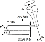 切削作用及び研削作用を併せもつ,放電加工成形された超硬合金製回転単純円柱形マイクロ工具を用いて,黄銅に対して微細軸加工を行った.その結果,直径3μm未満の極小径軸の加工が可能となった.