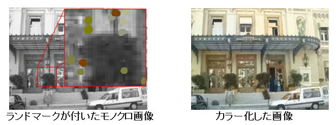 例:ランドマークを用いたモノクロ画像のカラー化 ![]() |