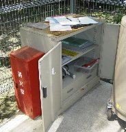キャビネットにはそのほかに,保護めがね,革手袋,直結用ジョイント,各種レンチ,極低温用パッキング,などの物品が収納されている.