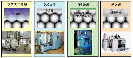【概 要】 日本が持つ各種技術の中で,近隣諸国が未だに太刀打ちできない技術が「表面改質・熱処理技術」です.本研究では,プラズマ処理,FPB(微粒子衝突)処理,熱処理等の各種表面改質を下地処理として施した後,最終処理としてDLC被覆を施すことにより,金属材料の耐摩耗性,耐食性および疲労強度の同時的改善を目指します.