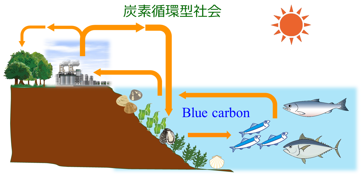 また、人間が作り出し大気に放出される二酸化炭素(CO2)のうち、海が吸収する二酸化炭素(ブルーカーボン(Blue Carbon))の割合のほうが、森林が吸収するそれ(グリーンカーボン(Green Carbon))の割合より多いと言われています。海が造り出す地球環境の炭素循環の中に含まれる海の生物を利用するという観点からも、有用な研究課題であると考えています。