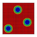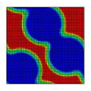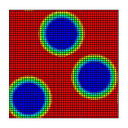 φ4の母相中からφ1, φ2, φ3の3つの新相が均一な化学的駆動力によって成長するマルチフェーズフィールド(MPF)シミュレーションプログラムです.