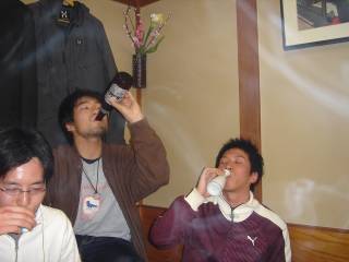飲み屋に移動。安東さんは日本酒で乾杯 |