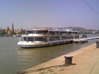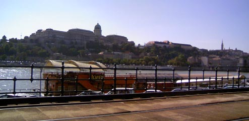 ドナウ川と対岸の王宮(左のドーム),マーチャーシュ教会(右の尖塔)