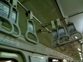吊り革は可動式だったり天井から下がっていたり