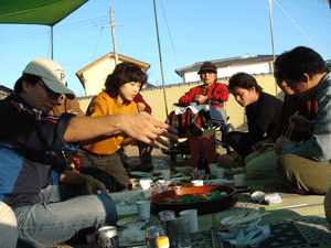 まずは食事を食べます。その後は飲めや歌えやのどんちゃん騒ぎ