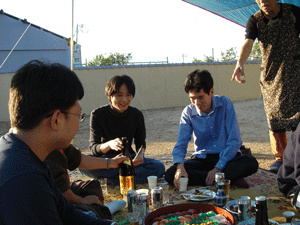 お酒をついだりつがれたり、昼間から外で飲む酒は格別です。