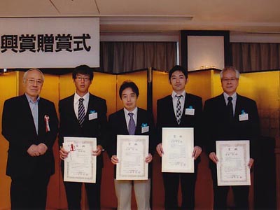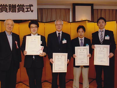 奨励賞を2件受賞.1件目(翁,熊谷(欠席),江頭,山口,太田)