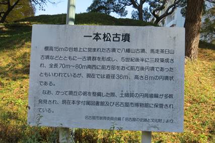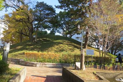 キャンパス内にある一本松古墳. 古墳内への立ち入りは可能ですが,当学の学生の間には古墳に登ると留年するという伝説があるだとか...