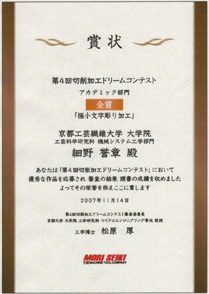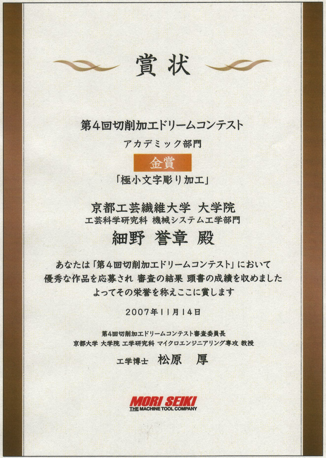 第4回切削加工ドリームコンテストにて金賞を受賞しました
