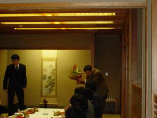 まずは花束の贈呈 |