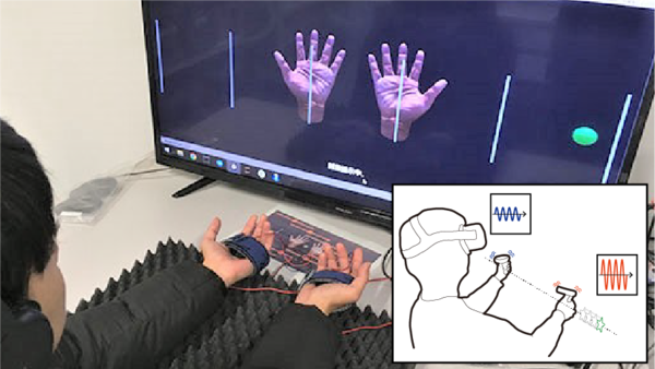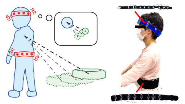 周囲の物体の3次元位置情報を振動刺激を用いてヒトに知覚させるシステムを構築した.また,複数の振動刺激を目標位置に応じて動的に制御するモデルを構築した. We constructed a system that enables humans to perceive 3D positional information of surrounding objects using vibration stimuli. And, we constructed a model that dynamically controls multiple vibration stimuli according to the target position.
