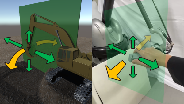 掘削,旋回などの複数のサブタスクごとに適した操縦方法を実験的に調査し,その結果を統合することで高い操作性と低い操作負担を実現する操縦インタフェースを構築した.