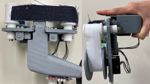 多種の素材の巻き取り・送り出しをVRに連動して動的に制御することで,VR内で様々な素材に触れる感覚を提示するシステムを構築した.