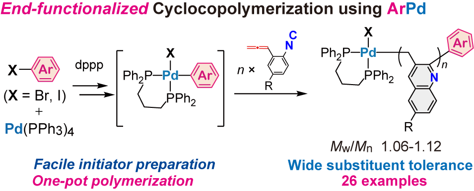 "Synthesis Methodology of End-Functionalized Poly(quinolylene-2,3-methylene)s: Living Cyclocopolymerization Using Aryl Palladium Initiators Conveniently Prepared from Versatile Aryl Halide"